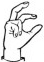 На ћирилици написано САВЕТА РАКЕЗИЋ састоји се из 13 слова [?]. Исписано ћириличном једноручном азбуком за глувонеме: